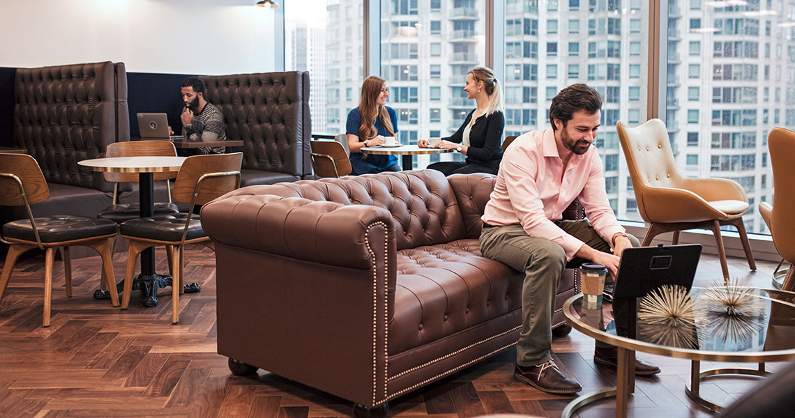 Met onze verscheidenheid aan type werkruimtes kunnen onze klanten kiezen of ze in een stille ruimte willen werken zodat ze zich kunnen concentreren, of in een meer collaboratieve ruimte met gedeelde bureaus waar interactie wordt aangemoedigd. Ze kunnen zelfs beslissen om thuis te werken, op dagen dat ze dat moeten. Flexibiliteit is de sleutel.